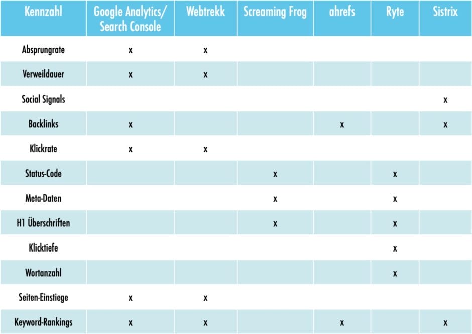 Bevor Sie an die Analyse und Interpretation Ihres Contents gehen, benötigen Sie einige relevante Daten als Basis. Diese zeigen Ihnen zum einen den IST-Zustand und liefern zum anderen wichtige Kennzahlen, die Ihnen die Analyse erleichtern.