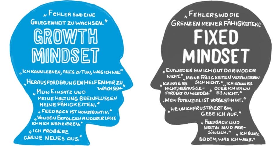 Ein „Fixed Mindset“ denkt: „Das schaffe ich nie. Die Technik ist außerdem zu unsicher. Und die Arbeitsergebnisse werden auch darunter leiden. Wird Zeit, dass wir wieder alle im Büro beieinandersitzen.“