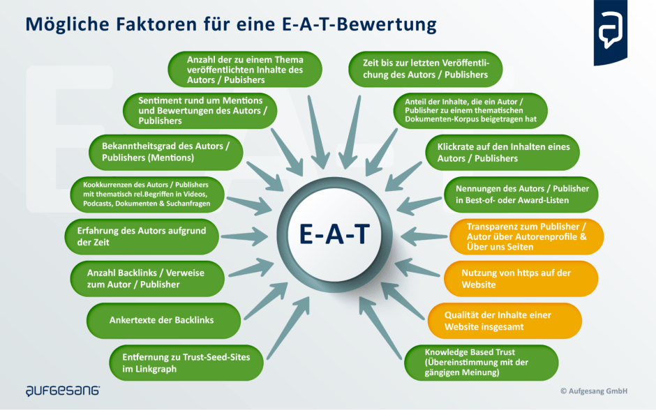 Aus Aussagen, wissenschaftlicher Arbeiten und Patenten von Google konnte ich einige der möglichen Signale zur Bewertung von E-A-T und damit der Marke ableiten: