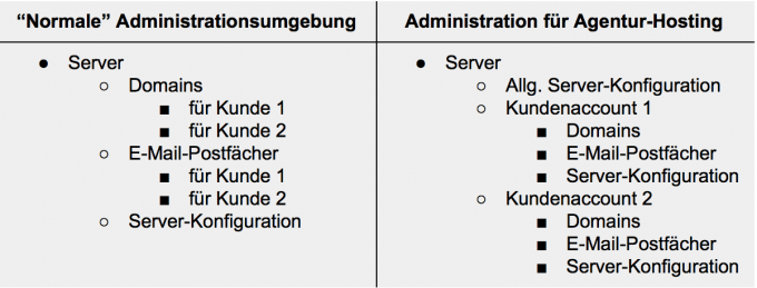 Hosting-Dienstleister, die sich auf Agenturen und Freelancer spezialisiert haben, bieten in der Administrationsumgebung nicht nur den Server, sondern darunter auch Kundenaccounts an. Das könnte im ersten Moment ungewohnt wirken, erweist sich aber im Alltag als überaus praktisch.